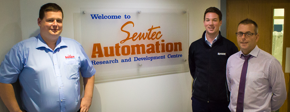 Nathan Walsh of HMK (Middle) presenting Zbigniew Kolasinski (left) and Gary Day (right) of Sewtec Automation with their winning red letter day vouchers.