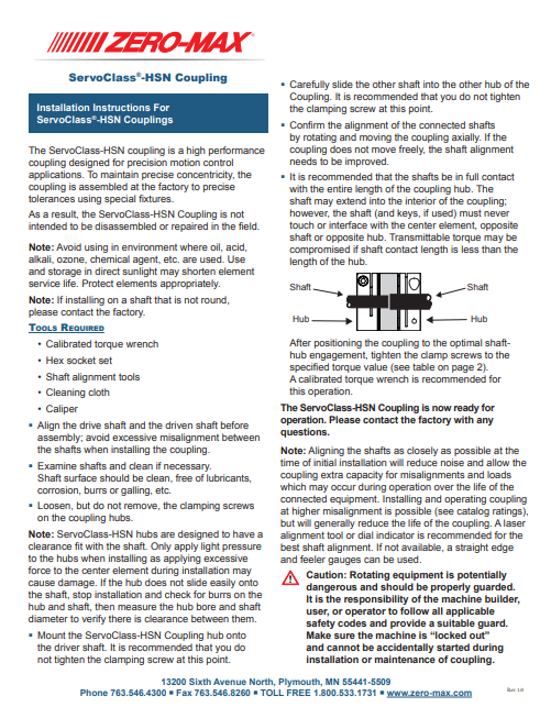 Misalignment capability of a coupling is also important in a servo motion control system. Usually, the alignment of a well-manufactured servo system will be very good. Over time and under high load conditions, this alignment may deteriorate. The coupling should be capable of handling this change. Also, the coupling should accommodate any lack of concentricity in the connected shafts as well as the stack-up of tolerances in the motion assembly. Another important benefit of a high misalignment capability is the dispersion of reaction loads on the bearings and bushings in the system. The Zero-Max servo motor coupling utilises a design that provides adequate amounts of flexibility but does not sacrifice any of the torque capability or the torsional stiffness capability, and therefore minimises the reaction loads to the servo motor bearings.