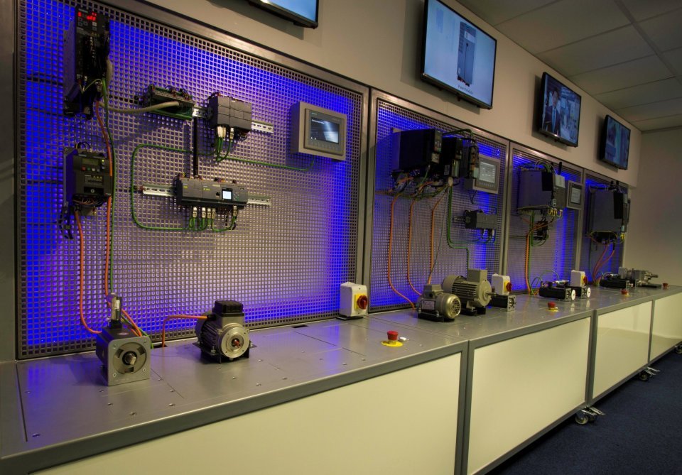 Each individual rig is programmed with working demonstrations to fully immerse customers into a hands on experience of the Siemens drive technology range. The room also features a mechanical portfolio of products to complement and complete the integrated drive systems experience.