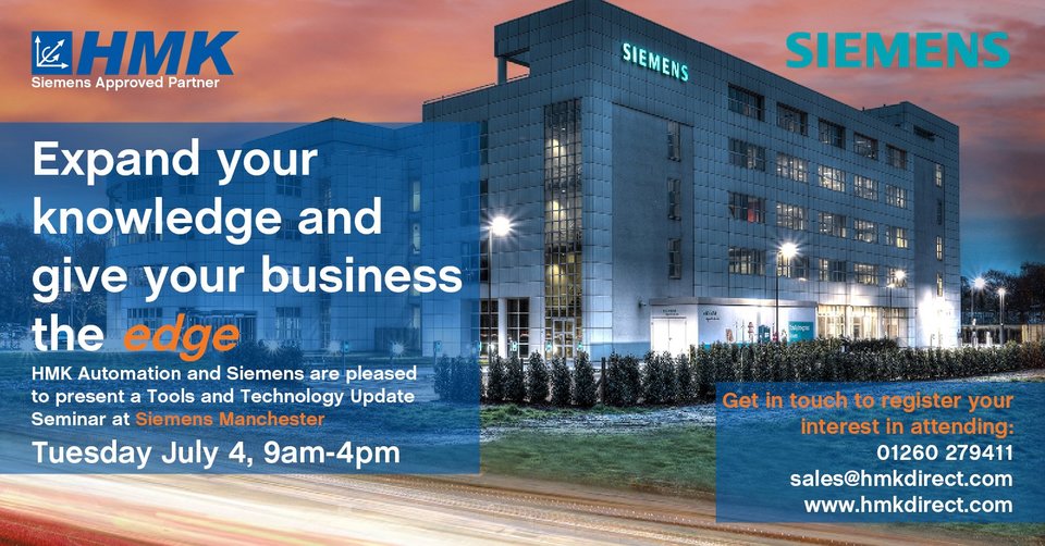 Gary Kitchin, Managing Director at HMK Automation, said: “We’ve worked with Siemens for over 30 years and they’re at the forefront of innovation, so we can’t wait to welcome our customers to this exclusive event where you’ll be able to discover the latest tools and technology from Siemens.