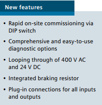 Plug-in I/Os and communication; optional plug-in connections for 24 V DC and 400 V AC