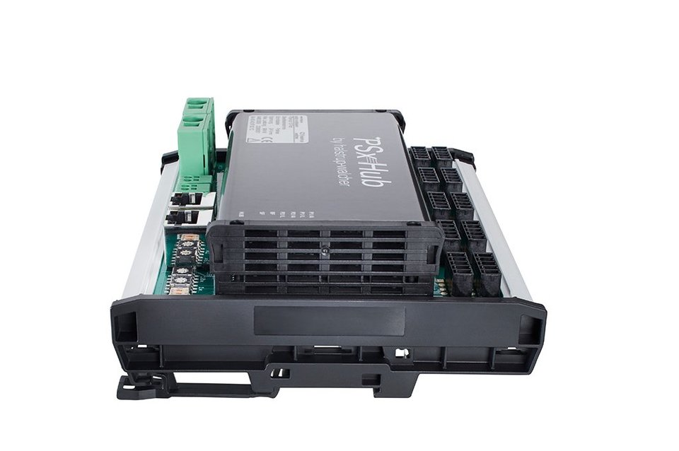 The intelligent PSxHub is available to implement the parallel operation of positioning systems for format adjusting as efficiently as possible. The intelligent PSxHub to implement the parallel operation of positioning systems for format adjustment as efficiently as possible: as an active bus component, the smart connection element offers simple integration for up to 16 positioning systems from the PSD family (PSD 4xx with IO-Link), ensures smooth communication with the controller and is economical thanks to the single-cable solution with unshielded, standard A-coded cables, among other things. The flexibly configurable synchronization control and monitoring integrated in the PSxHub ensures synchronised parallel operation of the controlled positioning systems. As a flexible technology platform, the PSxHub enables a wider performance spectrum (e.g. in terms of power requirements and synchronization) compared to classic IO-Link hubs without a control function. With its companct housing design from 14.2 x 16.4 x 6.4 cm (control cabinet version), it is an efficient and space-saving solution for central data and power transmission. The PSxHub is available for the industrial Ethernet systems PROFINET and EtherCAT (others on request).