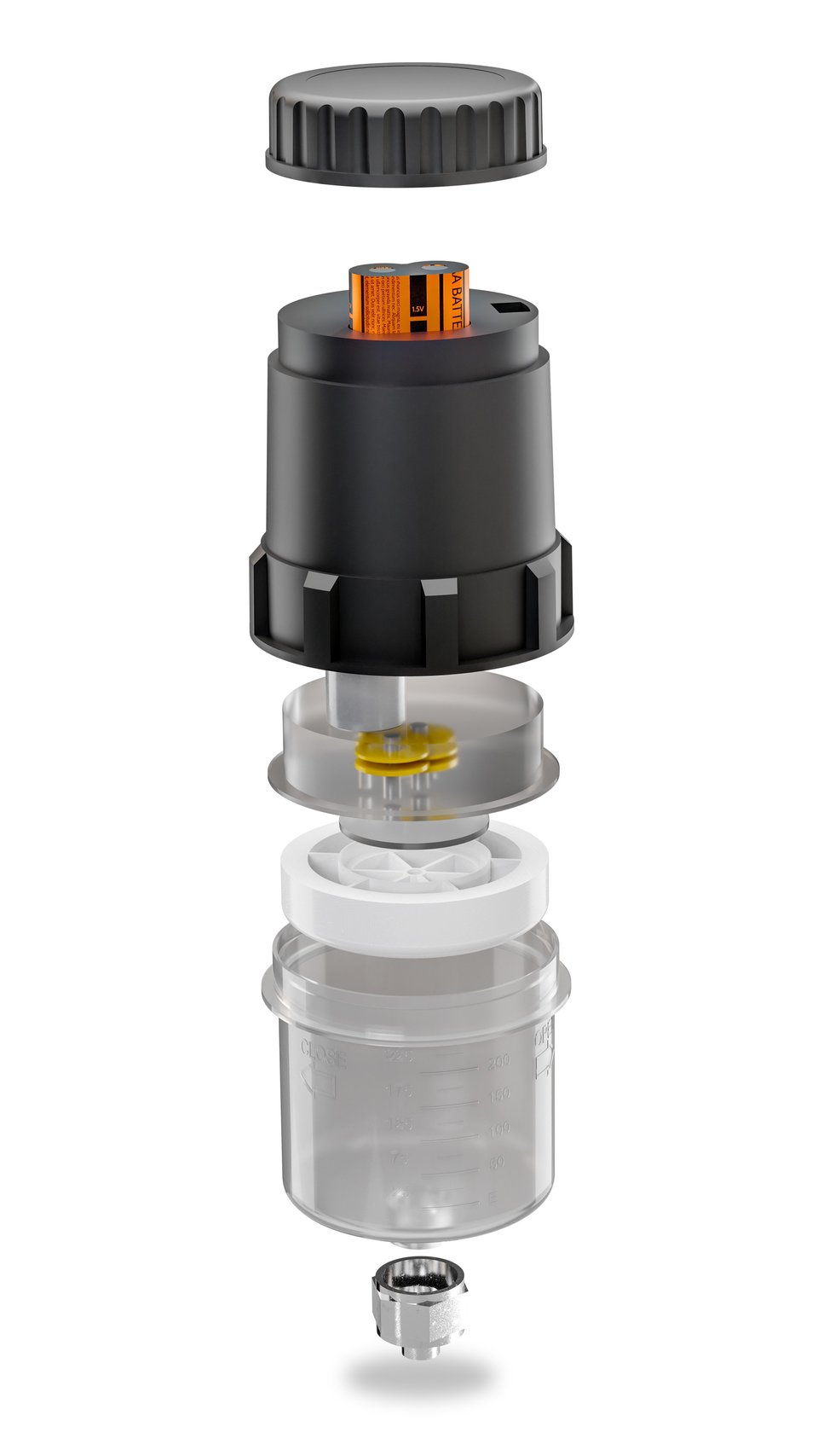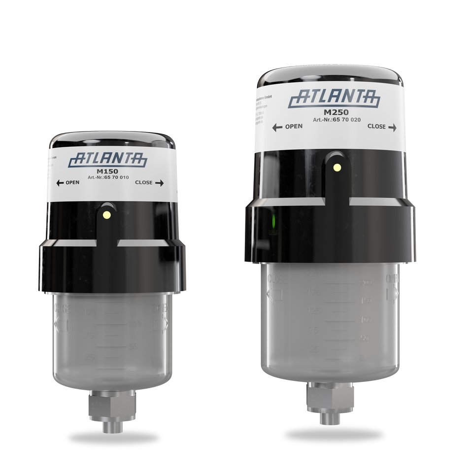 With a delivery pressure of 7.5 bar, type M operates automatically and temperature-independently for up to one year. The emptying time of the dispenser (dosing of the lubricant) can be freely selected between 1-12 months. It is possible to change the setting or switch off the unit at any time.